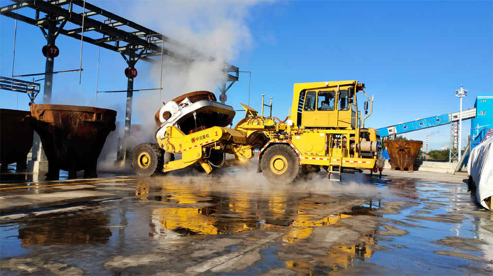由中冶寶鋼研制的70噸鉸接式抱罐車,采用鵝頸鉸接型式,額定載重75噸,重載最高時速為每小時20公里,翻罐角度105度,最大爬坡能力8%,最小轉(zhuǎn)彎半徑9米。該車型應用專利技術(shù)10項,在國內(nèi)有色冶煉市場占有率超過75%,先后榮獲中國有色工業(yè)協(xié)會、中國鋼鐵工業(yè)協(xié)會科技獎,中國施工企業(yè)管理和中國循環(huán)經(jīng)濟協(xié)會專利獎等榮譽。